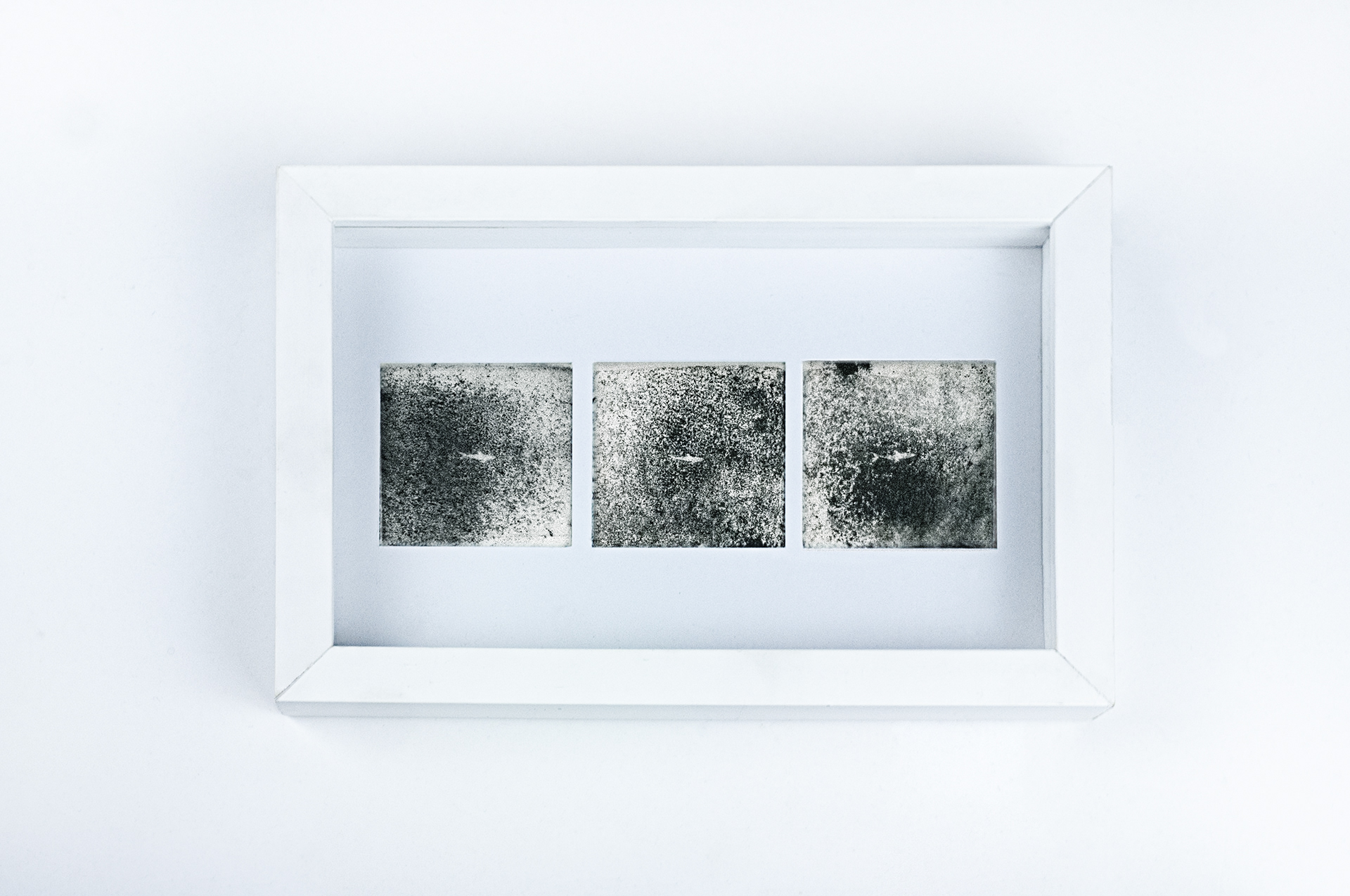 Guache sobre cartão, 3 gravuras de 5x5 cm